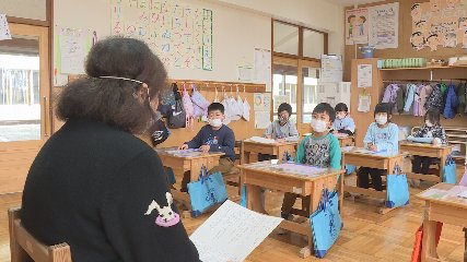 土淵小学校の1年生が子ども語り部認定を目指し練習をがんばっています。土淵小学校による遠野の昔ばなしを伝える子ども語り部の育成は、今から23年ほど前の平成11年に、語り部で日本一の学校を目指そうという当時の校長の思いをきっかけに始まりました。現在は、授業や朝学習などの時間を活用し、全校児童一人ひとりが年間を通して最低でも一つは語れるようになろうと、必修演目の練習に励んでいます。この日は、1年生と2年生それぞれの教室で、地元土淵町の語り部・立花和子さんによる年に1度の語り部指導が行われました。ことしから初めて語り部に挑戦する1年生が練習しているのは、遠野の昔ばなし「とうふとこんにゃく」です。児童たちは、どのように語ったらもっと良くなるかを立花さんが語る「とうふとこんにゃく」を聞きながら自分たちとの違いを探していきました。立花さんの優しくて分かりやすい指導のおかげもあって、児童たちは語りの楽しさを改めて学び、有意義であっという間の時間を過ごした様子でした。1年生は、3学期に行われる認定会を経て子ども語り部としての認定証バッジをもらうことになっています。なお、来年2月に開かれる昔ばなし祭りには、語り部の練習に励んでいる市内4つの小学校が出演する予定となっています。子どもたちからどんな話しが聞けるのか楽しみですね。