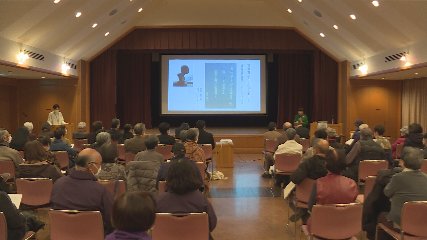 遠野文化研究センター講座「謎解き遠野高校の宮沢賢治像」が10日・土曜日、あえりあ遠野で開かれました。この講座は、今から48年前に遠野高校に建立された宮沢賢治像についてその知られざる謎を解き明かすことをテーマに遠野文化研究センターが開きました。会場となったあえりあ遠野中ホールには大勢の観客が足を運び、講師を務めた遠野文化研究センター研究員の菊池弥生さんの言葉に耳を傾けました。講座ではなぜ、宮沢賢治像が遠野高校に建てられることになったのかまた、その制作者や本人に似ていない理由など、新たに発見された資料などをもとに多くの謎に迫りました。最後に、講師を務めた菊池さんは、「多くの人たちの尽力によって建てられた遠野高校の宮沢賢治像はどこにもない素晴らしい宝物です。」「これからは遠野市民の遺産として次の世代に引き継いでいってもらいたい」と、思いを伝えていました。参加者は、講座を通じて遠野高校の宮沢賢治像やそれを取り巻く多くの関係者の想いなどに触れ、理解を深めた様子でした。なお、講座の様子は、後日、遠野テレビの番組として放送する予定です。