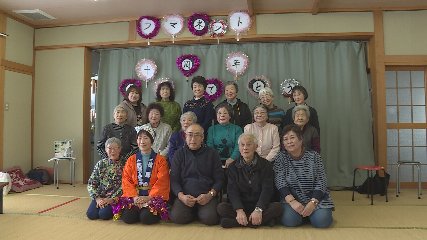 上早瀬にある遠野町第12区自治会が取り組んでいる「ふまねっと教室」が10周年を迎え、参加者たちがお楽しみゲームや踊りを踊ってお祝いしました。10周年をお祝いしようと、きのう(26日・木曜日)、自治会館には、華やかな飾り付けが行われキレイなお花などが届けられる中、参加者が集いました。「ふまねっと教室」は、年々高齢化が進む状況の中で、地域に住んでいる人の健康維持や介護予防、交流の場の提供を目的に平成24年度スタート、村木久仁子さんを代表に、「笑いから健康に」を心がけた雰囲気づくりが行われています。最初は7人だった参加も、その後、交流の輪が広がり、多いときで36人まで参加者が増え、現在は、山中一自治会長協力のもと、月2回開かれる教室に18人が参加しています。この日の始めに、村木さんは、「半年続くか、一年続くかと始めた『ふまねっと』が、10年を迎えたことに驚きと感動、感謝でいっぱいです」とあいさつしました。教室で行っている「ふまねっと運動」は、およそ50センチメートル四方のマス目でできた「あみ」を床に敷き、その「あみ」を踏まないようゆっくり慎重に歩く運動で、歩行機能や認知機能の改善が期待できるということです。教室の10周年に、参加者からは、仲間づくりに体力づくりの明るく楽しい教室であることへの感謝がたくさん届けられました。また、スタート当初からサポートしてきた上郷町の小野マサ子さんには、参加者のみんなから感謝状とお花が贈られました。この他、参加者が昔ばなしや踊りを披露したりお楽しみゲームを楽しんだりしながら、感謝あり笑顔ありの10周年をお祝いしていました。