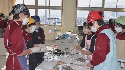遠野中学校の生徒たちが先週水曜日(8日)、ひなまんじゅうづくりに挑戦した様子が届きましたのでお伝えします。ひなまんじゅうづくりは、地元の郷土食に触れ学ぶことで、次の世代に継承してほしいと遠野中学校で毎年行われています。この日は、コロナの影響により2年ぶりにひなまんじゅうづくりが行われ、3年生103人が挑戦したということです。生徒たちは、遠野市食生活改善推進委員の手ほどきを受けながら、生地にピンクや黄色などの彩りを加えたあと、あんこを包み、型や木べらを使って、桜や菊などの形に仕上げていたということです。なお、完成したひなまんじゅうは、生徒たちが家に持ち帰り家族に見せたあと、おいしくいただいたということです。