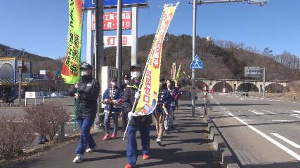 防火PR駅伝が今週日曜日(5日)に宮守町で開催され防火予防を呼びかけました。その様子が届きましたのでお伝えします。この防火PR駅伝は、「お出かけはマスク戸締まり火の用心」を全国統一防火標語とする春の全国火災予防運動にあわせて市民に防火を呼びかけようと実施されました。はじめに、宮守小学校6年の菅原瑞希さんが防火の誓いを宣言しました。この日は、宮守・達曽部・鱒沢・小友の少年消防クラブのほか、消防団と消防職員が参加し、宮守町中心市街地などを行進班と車両班に分かれて防火をPRしました。参加者たちは、拍子木を打ち鳴らしたり、マイクを使ったりしながら火災予防を呼びかけたということです。なお、遠野消防署では、春は空気が乾燥し、火災が発生しやすい季節なので、ストーブやコンロなど火を取り扱う場所の周りには燃えやすいものを置かないよう注意を呼びかけています。