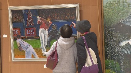 新穀町に住む男性による最後の作品展が市役所本庁舎で開催されています。最後の作品展を開いているのは菊池隆さんです。会場にはオランダの画家フェルメールの名画を模写した作品や遠野市内の風景画など16点の油彩画が展示されています。中でも目を引くのはメジャーリーグで活躍中の大谷翔平選手をテーマにした3つの油彩画。ホームランを打ちバットを放り投げる瞬間などが躍動感のあるタッチで描かれています。菊池さんは大谷選手について、「岩手が生んだ世界的スター、彼が活躍するたびまるで自分のことのようにうれしい気持ちになる。」と話しています。現在89歳の菊池さんは、これまで腎臓がんや心筋梗塞など大病を乗り越えてきました。しかし、ここ数年視力の急な低下などの理由から絵を描き続けることが難しくなったため、今回の作品展を最後に筆を置くことを決めたそうです。なお、「第16回菊池隆作品展」は今週22日・土曜日まで開かれています。
