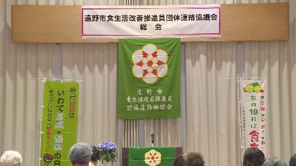 今年度の遠野市食生活改善推進員団体連絡協議会の総会が、先週金曜日(19日)健康福祉の里研修ホールで開かれました。遠野市食生活改善推進員は、「私たちの健康は私たちの手で」を基本方針に、食を通じて市民の健康づくりに励もうと、地域の人たちと交流しながらの調理実習や減塩のすすめ教室の開催など、市内各地で活動しています。総会には、本人出席28人、委任状出席55人の合わせて83人が出席し、はじめに、みんなで、全国食生活改善推進員協議会の歌「今日がある」を歌いました。そして、菊地セツ子会長が「小さなことでも実践を積み重ねることが自分の体を良い方向に持っていく。互いに無理をせず、自らの秘めた力を発揮できるよう願っています」とあいさつしました。このあと、令和4年度事業報告や令和5年度事業計画案などが審議され、いずれも、原案の通り承認されました。このうち、令和4年度事業報告では、「おやこの食育教室」や高校生に対する食育講話など市の食育事業と共催し、普及活動に取り組んだということです。また、上郷支部の佐々木トモさんと鱒沢支部の阿部久子さんは、長年の食生活改善推進員としての活動が評価され、岩手県食生活改善推進員団体連絡協議会の会長表彰を受けました。なお、今年度は、野菜摂取状況測定器ベジメータを活用した食生活改善指導や食生活推進員の活動を地域に広く広報する仲間拡大事業などに取り組んでいくということです。