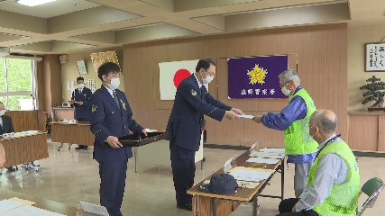 地域交通安全活動推進委員に対する委嘱状の交付が先週金曜日(19日)、遠野警察署で行われました。地域交通安全活動推進委員は、道路の交通安全と円滑を確保するために地域で行われる各種交通安全活動のリーダーとして活躍しているボランティアの中から岩手県公安委員会が推進委員として委嘱した人たちです。この日は、地域交通安全活動推進委員10人のうち出席した6人に委嘱状の交付が行われ、一人一人名前が呼ばれたあと遠野警察署の柾谷修署長から委嘱状が手渡されました。地域交通安全活動推進委員の任期は、令和5年4月1日から令和7年3月31日までの2年で、自転車の安全利用の促進や、子どもをはじめとする歩行者の安全の確保などに取り組んでいくということです。このあと、遠野警察署地域交通安全活動推進委員協議会の総会が開かれました。はじめに、遠野警察署の柾谷署長が、「今後も皆様の豊富な知識と経験をいかしていただき各地域での交通事故抑止活動にご協力よろしくお願いします」とあいさつしました。続いて、議事に入り、令和4年度の活動報告と令和5年度の活動計画などについて審議され、すべて原案の通り承認されました。また、役員の改選も行われ、会長に藤澤俊明さん、副会長に植村邦彰さん、幹事に昆覚さんが選ばれています。