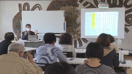 遠野物語に描かれている説話を取り上げながら村落の伝承について学ぶ学習会が20日・土曜日に開かれました。この学習会は、遠野物語の魅力を掘り下げていこうと『村落伝承論遠野物語から』の著者で千葉大学名誉教授の三浦佑之さんを講師に招いて開かれました。2回目となるこの日は「事実譚の表現構造」をテーマに話をより面白くしている表現について解説されました。三浦さんは遠野物語にある熊を狩りに行った男たちの話について新聞と遠野物語で同じ出来事を取り上げているにも関わらず、話の展開が異なっていると指摘します。学習会を通じて参加者たちは文学研究者の視点から見た遠野物語の世界について学びを深めていました。