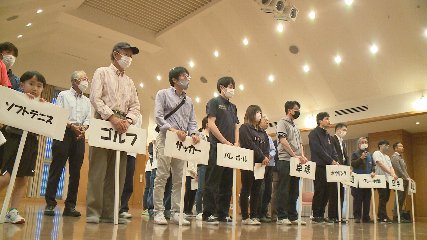 県民体育大会に出場する遠野市選手団の結団式が先週金曜日(23日)あえりあ遠野で行われました。この日の結団式には、選手や関係者およそ40人が出席しました。はじめに、遠野市体育協会の佐々木達郎副会長が「皆さん、精いっぱい、遠野市民であることに誇りを持って頑張ってください」とあいさつしました。続いて多田市長が選手たちの活躍を願い、激励しました。このあと、各競技の選手団が紹介され、各団体の代表者が大会に向けた意気込みを述べました。おわりに選手団を代表してボウリングに出場する菊池和吉さんが選手宣誓を行いました。なお、今大会に遠野市からは12の競技に117人の選手が出場する予定で、県民体育大会は、8月20日まで県内各地で行われるということです。