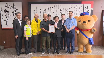 市民に交通安全を呼びかける「かっぱレター」が先週金曜日(14日)市内の企業・団体から遠野市交通安全対策協議会に贈られました。遠野市交通安全対策協議会では、市民に交通安全意識を高めてもらおうと、「かっぱレター大作戦」と銘打って、平成21年度から市内の全世帯に「かっぱレター」を届けています。15回目となる今年度は、市内の企業・団体58社の協賛を得て、交通事故防止などを呼びかける1万1,040枚のはがきが作成されました。この日の贈呈式では、協賛企業・団体を代表して遠野美装の菊池章好代表が遠野市交通安全対策協議会の会長を務める多田市長に「かっぱレター」の趣意書を手渡しました。受け取った多田市長は、「市内の企業・団体のご厚意によりこの事業に取り組めることに感謝します。今後も交通事故防止の呼びかけ強化に努めていきます」とあいさつしました。また、遠野警察署の柾谷修署長は、「かっぱレターは、交通安全意識を高める効果があるものと思います。安全・安心な遠野市のため引き続き、皆さんのご尽力をお願いします」と取り組みに感謝していました。なお、「かっぱレター」は、先週金曜日から配達が始まっていて、今月24日までに市内の全世帯に届けられるということです。
