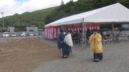 令和6年度に供用開始を予定している鱒沢地区センター整備がいよいよ着工となるにあたり、先週日曜日(9日)に、安全祈願祭が行われました。安全祈願祭には、多田市長をはじめとする市の関係者や多田市議会議長、鱒沢地域づくり会議の役員などおよそ30人が出席しました。神事では、四方祓いの儀や鍬入れの儀などが執り行われ、玉串奉奠では、それぞれの代表者が祭壇に玉串を捧げて工事の安全を祈願しました。鱒沢地区センターは、宮守町鱒沢地区における地域づくり、社会教育活動などの拠点施設として、令和6年4月からの供用開始を目指し今後整備が進められます。この日は、地域を代表して鱒沢地域づくり会議の小友善衞会長があいさつをし、「地域住民が集い元気で思いやりにあふれた地域づくりができる、みんなに愛されるセンターとなることでしょう」と、完成を待ちわびていました。また、多田市長は、これまで建物がない中での地域活動について地域のみなさんに心からの感謝を伝えながら、「鱒沢地区センターの明るい未来、前途洋々たるものにするためみんなで支え合っていきたい」とあいさつしていました。鱒沢地区センターは、宮守町下鱒沢34地割2番地内に、工事請負費や委託料などの全体事業費、3億8711万円をかけて建設されます。建物は、地域木材を活用した木造平屋建てで、各所にスロープを設置しバリアフリーにも対応するということです。また、天候に左右されることなく利用可能な外部活動空間を設け、屋内との連携がしやすいよう各所に出入口が設置される予定です。その他、屋内には、間仕切壁を採用することで使用目的によりフレキシブルな利用を見込んでいるということです。なお、用地内の既存建築物の解体などはすでに始まっており、来年4月からの供用開始を目指して整備が進められます。
