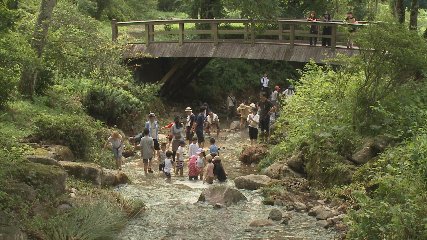 遠野市と友好都市である東京都武蔵野市の家族が先週遠野を訪れ、遠野の自然を満喫しながら交流を深めました。武蔵野市家族ふれあい自然体験は、遠野の自然を満喫しながら交流を深めてもらおうと平成16年から実施されており、ことしで13回目を迎えます。4年ぶりに開催された家族ふれあい自然体験は、先週17日・木曜日から20日・日曜日までの3泊4日の日程で行われ、13家族42人が遠野を訪れました。初日の歓迎式では、はじめに、鈴木副市長が、「武蔵野市の皆さんが日頃、生活している都会とは違った体験が遠野では出来ると思います。ぜひ、遠野での滞在を堪能してください」と武蔵野市の家族を歓迎しました。次に、武蔵野市を代表して武蔵野市児童青少年課の岡達人課長が「遠野での体験を通して市民同士の交流がますます深まることを期待します」とあいさつしました。このあと、一行は、早速、遠野名物バケツジンギスカンを楽しみました。滞在中、一行は、昔ばなしやしし踊り鑑賞、農家での民泊、魚の掴み取りや餅つき、乗馬など自然豊かな遠野での体験を満喫しました。遠野での自然体験は、武蔵野市から訪れた家族たちにとってかけがえのない夏休みの思い出の1ページとなった様子でした。