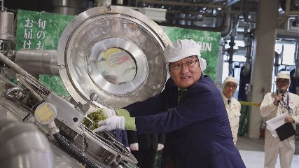 遠野産のホップを使った「一番搾りとれたてホップ生ビール」の仕込式が、今週火曜日(19日)に宮城県にあるキリンビール仙台工場で行われました。その様子が届きましたので、お伝えします。遠野産ホップを急速凍結して使用した「一番搾りとれたてホップ生ビール」は、ことしで発売から20年を迎え、累計販売数量は、3.5憶本を突破しました。今週火曜日(19日)キリンビール仙台工場で行われた仕込式には、多田市長や遠野ホップ農業協同組合の安部純平代表理事組合長など関係者50人が出席しました。初めに主催者を代表してキリンビール仙台工場の末武将信工場長が、「全国で記録的な猛暑となりホップ栽培にとっては難しい状況だったが、良質な遠野産ホップをしっかりバトンタッチしてくださったので、これから心を込めてビールをつくっていきます」とあいさつしました。また、多田市長は、ことし、キリンビールとの契約栽培が60年を迎えたことに触れ、ことしも無事にホップを収穫でき仕込式を迎えられたことに感謝を伝えていました。このあと関係者の手によってビールの発酵に使う煮沸窯の中に、細かく砕かれた遠野産ホップが投入されました。なお、「一番搾りとれたてホップ生ビール」は、11月7日・火曜日・から全国発売されます。