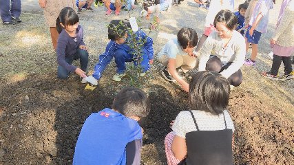 綾織小学校創立150周年を記念してサザンカの植樹がきのう(2日・月曜日)行われました。記念植樹は綾織小学校150周年記念事業の一環として企画されたもので、校門付近にサザンカの苗木2本が植えられました。サザンカは寒さに強くきれいな花をたくさんつけることから子どもたちにもサザンカのように丈夫に育ってほしいと選ばれたそうです。児童たちはサザンカが大きく立派に育つように願いながらシャベルで優しく土をかけていました。また、植樹作業には教職員や地域の人も参加し、全員が土をかけ終わったあと、くす玉を割って150周年を祝いました。なお、綾織小学校150周年記念式典は今月14日・土曜日に開かれ、式典終了後には学習発表会が行われるということです。