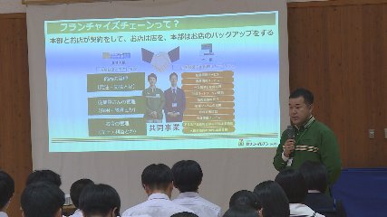 中学生が企業の仕組みや環境問題について学ぶキャリア講話がきのう(5日・木曜日)遠野中学校で行われました。このキャリア講話は遠野中学校の3年生が将来働くときに役立つ知識や企業の仕組みなどを学ぶために実施され、今回は大手コンビニチェーンのセブン-イレブン・ジャパンの社員を講師に招いて行われました。講話では初めにセブン-イレブンに関するクイズが出題されました。続いて県内のセブン-イレブン76店舗を統括する岩島陽祐さんがことしで創業50周年を迎える会社の歴史やフランチャイズチェーンの概要などを説明しました。また、セブン-イレブンが現在行っているSDGsの取り組みや弁当やサラダなどの食品ロスを防ぐための工夫なども紹介されました。3年生の生徒たちは時折メモを取りながら真剣な表情で話を聞いていました。