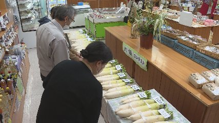 大根の品質の良さを競う「大根コンテスト」が先週金曜日(10日)宮守町のめがねばし直売所で開催されました。ことしで9年目となる大根コンテストにはめがねばし直売所の組合員28人が参加し、「耐病総太り」という品種の青首大根を2本ずつ出品しました。審査は岩手県の遠野普及サブセンターと遠野市の職員が行い、サイズや色合いなどを基準においしそうな大根を選んでいきました。審査の結果、最優秀賞には菊池京子さんの大根が選ばれました。全体のバランスがよくとれた見事な大根です。また、急きょ設定された「すべすべで賞」を受賞したのは菊池富子さんの大根です。小ぶりでありながらすべすべとした綺麗な皮が受賞の決め手となったそうです。なお、コンテストに出品された大根は、きのう(13日・月曜日)宮守町内の福祉施設や保育園に届けられたということです。めがねばし直売所の多田悦子組合長はこのイベントは今後も続けていき、大根以外の野菜でもコンテストを行っていきたいと話していました。