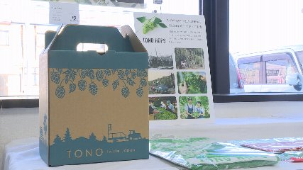 遠野のホップ栽培60周年を記念した「ホップデザイン・アート展」が現在岩手銀行遠野支店で開かれています。この展示は、遠野のホップ栽培がことしで60周年を迎えたことを記念し、関連したパッケージやデザインなどを紹介することで、遠野のホップ栽培とビール文化の機運を高めていこうと、上閉伊酒造、遠野醸造、BrewGoodの3社が岩手銀行遠野支店と開催しているものです。店内にはBrewGoodのデザイナー上西尚宏さんがこの展示のために制作したポスター作品9枚とそれぞれの事業者が制作したビール瓶や缶のラベルデザインなどが展示されています。また、ホップ栽培60周年を記念した帽子や、遠野ホップ収穫祭で販売されたリユースカップ、さらに、ホップ畑と遠野の日常がデザインされたギフトボックスもあり、銀行を訪れた人たちの目を楽しませていました。この展示会を企画したBrewGoodの上西さんは、「遠野のホップ栽培を持続可能なものにするため、商品を通じて遠野を訪れる人が増えるきっかけとなるデザインを今後も大事にしていきたい」と話していました。また、岩手銀行遠野支店によりますと「展示は初めての試みだったが、訪れた人が足を止めて見入っている様子が伺える」とホップデザイン・アート展の開催に手ごたえを感じているようでした。なおこの展示は、今月29日金曜日営業時間の午前9時から午後3時まで見ることができます。Copyright(C) TonoCableTelevision. All rights reserved.