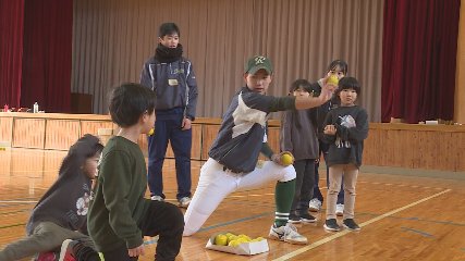 緑峰高校硬式野球部がきのう(26日・火曜日)園児を招いてティーボール教室を開きました。このティーボール教室は野球の楽しさを伝えようと、緑峰高校硬式野球部が開いたもので、きのうは白岩保育園の年長児13人が参加しました。ティーボールは野球によく似たスポーツで、打者は投手が投げるボールではなく止まっているボールを打ちます。また、ボールとバットは柔らかい素材でできており、ケガの心配が少なく室内でも楽しめます。園児たちはバッティングのほか、ボールの投げ方や捕り方を野球部員から教えてもらい、元気いっぱいに体を動かしていました。野球部員たちはバットを振るときのコツやボールをうまく投げるためのリズムの取り方など、園児にもわかるように優しくアドバイスを送っていました。ティーボール教室は1時間ほど行われ、園児たちは野球やティーボールの楽しさに興味を持った様子でした。Copyright(C) TonoCableTelevision. All rights reserved.