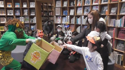 こども本の森遠野で「まめまきごっこ」が行われた様子が届きましたのでお伝えします。先月27日・土曜日に行われた「まめまきごっこ」には、市内外から28人の未就学児親子が参加しました。この日は、はじめに、こども本の森遠野のこどもスタッフ3人による「おにはそと」と「おめんです」の2冊の絵本の読み聞かせが行われたあと、みんなで鬼のお面を作りました。子どもたちは、自分の好きな色のお面に鼻や眉毛、目玉などを貼り付け思い思いの鬼の顔を作り上げていました。また、豆に見立てた新聞紙ボールを鬼の顔が描かれた箱に向かって投げ入れる遊び、まめまきごっこを楽しみました。そして、子どもたちが楽しそうに遊んでいると突然、緑鬼が登場。子どもたちは、母親にしがみついたり、柱の陰に隠れたりしていましたが、悪さをしない優しい鬼だとわかると一緒にまめまきや歌を歌って和やかに過ごしていました。なお、こども本の森遠野では、今月24日・土曜日にひなまつりを開催するということです。問い合わせは、こども本の森遠野までお願いします。Copyright(C) TonoCableTelevision. All rights reserved.