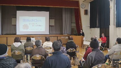 青笹もりもり健康塾「見て、触って五感で学ぶ冬の健幸講座」が、青笹地区センターで開かれた様子が届きましたのでお伝えします。この講座は青笹町民が元気でいきいきと暮らせるようにと青笹町健康づくりサポーターが開きました。講座では、『「健康はお口から」よく噛んで食べる習慣を!」と題して健康福祉の里保健医療課の歯科衛生士菊池より子さんが講演しました。菊池さんは、よく噛んで食べることは肥満予防や味覚・脳の発達などによい効果があると紹介しました。このあと、参加者が「咀嚼チェックガム」を噛んで自分の噛む力がどれくらいあるか確認したということです。また、この日は、腸や便の模型を使った「おなか元気教室」の講座も開かれ、おなかの健康や生活習慣、腸内細菌の働きなどについて学びを深めました。参加者たちからは、「噛み具合を調べられてよかった」「とてもいい内容の企画でした感謝です」などの感想が寄せられ好評だったということです。Copyright(C) TonoCableTelevision. All rights reserved.