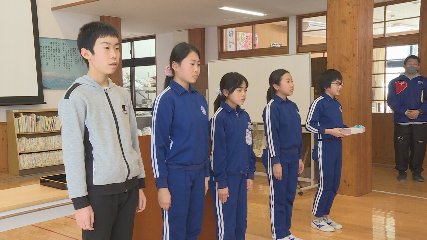 上郷小学校の6年生が能登半島地震で被災した人たちのために募った義援金を先週木曜日(22日)日本赤十字社岩手県支部遠野市地区に託しました。上郷小学校の6年生5人は、授業のなかで東日本大震災について知り、学習発表会では遠野市の後方支援を劇にして発表することで、「自分たちができることを考え行動すること」の大切さを学びました。この学びを生かし、能登半島地震で被災した人たちの役に立つことは何かを自分たちで考えた6年生たちは、すぐに行動して募金を呼び掛ける手紙やポスターを作成したり、校内放送を行ったりして今月16日に義援金を集めました。この日は全校が集まるなか、6年生5人が義援金「2万8,861円」を事務局を担当する健康福祉の里福祉課の菊池錠二課長補佐に手渡しました。菊池課長補佐は、「勉強されたことを行動に移したことがとても素晴らしいお金だけでなくみなさんの気持ちもしっかり被災地に届けたい」と感謝を伝えていました。Copyright(C) TonoCableTelevision. All rights reserved.