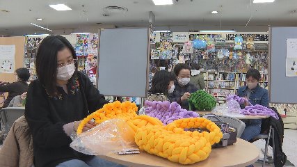 遠野市わらすっこファミリー・サポート・センターの会員交流会が今週日曜日(18日)遠野ショッピングセンターとぴあで開かれました。遠野市わらすっこファミリー・サポート・センターは「子育てするなら遠野」をスローガンに子どもを一時的に預かるなど地域で子育てを応援する取り組みを行っていて現在は160人の会員が所属しています。この日の交流会は会員同士の交流をさらに深め今後の事業を更に推進させていこうと遠野市が開きました。交流会には、託児を依頼する「おねがい会員」や託児を引き受ける「まかせて会員」など16人が参加するなか、とぴあ2階に店を構える「毛糸・手芸の店ルピナス」の代表白岩美雪さんが講師を務めマンドゥバッグづくりに挑戦しました。韓国を中心に流行しているマンドゥバッグはチャンキーニットという極太の毛糸を使って道具を使わず指だけで簡単に編むことができ餃子のような丸い形が特徴的なバッグです。参加した人たちは白岩さんから作り方の手順や編み方のコツなどを教えてもらうと参加者同士おしゃべりを楽しみながら手を動かしていました。作業開始からおよそ1時間30分で世界に1つだけのオリジナルマンドゥバッグが完成しました。なお、市では、今後も会員同士の交流を深めるためこのような会を開催していくとしています。Copyright(C) TonoCableTelevision. All rights reserved.