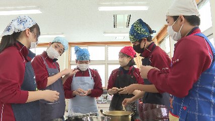 遠野中学校の2年生が先週の木曜日(22日)岩手県の郷土料理である「ひっつみ」づくりに挑戦しました。遠野中学校では地元の伝統ある食文化を学び、次の世代に引き継いでもらいたいと地域の人を講師に招き郷土料理を学ぶ学習に取り組んでいます。この日は、2年4組の生徒30人が岩手県の郷土料理である「ひっつみ」をつくりました。講師を務めたのは道の駅遠野風の丘にある「夢咲き茶屋」の昆裕子さんと菊池宏美さんの2人です。生徒たちは生地は耳たぶの固さまでこねることや上手な野菜の切り方などおいしくつくるためのコツを教えてもらいながら調理を進めていました。また、ダシが入った鍋に鶏肉や野菜を入れたあとは生地が厚くなりすぎないよう引っ張るように鍋に入れてひっつみを完成させていました。なお、遠野中学校では地元の伝統ある料理を次の世代に引き継ぐため今後も郷土料理などを学ぶ学習を実施していくということです。Copyright(C) TonoCableTelevision. All rights reserved.