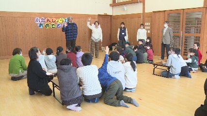 今年度最後のEnglishキャラバンが先週木曜日(7日)附馬牛児童館で行われ、 児童たちが楽しみながら英語を学びました。Englishキャラバンは、グローバルな人材を育成するため、子どもたちに遊びを通して英語に対する興味や関心を高めてもらおうと遠野市教育委員会が実施しています。この日は、附馬牛児童館を利用する児童およそ30人が参加しました。講師を勤めたのは、外国人キャラバン隊員の、アヤシビラルさんなど4人です。この日は、はじめに誕生日会が開かれ、児童館を利用する児童のうち3月生まれの児童たちが、英語を使って自分の名前や誕生日などを紹介しました。続いて行われた2つの中から人数が多い方を予想するゲームでは、児童たちは、先生のジェスチャーやこれまで学んだ単語をヒントに答えを探っていました。ほかにも絵本の読み聞かせのほか、英語で先生に質問をする時間や英語の歌とダンスをみんなで踊るなど、参加した児童たちは、楽しみながら英語を学んでいる様子でした。なお遠野市教育委員会では、来年度もグローバル人材育成推進事業に力を入れるとしており、小学生だけではなく幼児から高校生まですべての年代の子どもたちに対し異文化体験活動を実施するということです。Copyright(C) TonoCableTelevision. All rights reserved.
