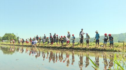 田植えのピークを迎えている今週、市内の小学校では田植え体験が行われています。きょう(22日・水曜日)は青笹小学校の田植え体験が行われました。きょう、青笹町の酒造会社裏の田んぼにやってきたのは、青笹小学校の5年生27人です。青笹小学校の5年生は、地元の酒造会社上閉伊酒造と遠野山・里・暮らしネットワークの協力を受け、地域の人たちと交流を図りながら米作りを学んでいます。きょうは、児童たちがおよそ4アールの田んぼにひとめぼれの苗を植えました。植える苗の一部は、児童たちが今月上旬から育ててきたものです。裸足になった児童たちは、ゆっくりと田んぼに足を踏み入れ、3本から5本ほどの苗を手に取り植えていきました。中には全身真っ黒になりながら植える児童もいました。また開始から30分足らずですっかり慣れて手際よく苗を植える児童の姿も見られました。この後には、代表の児童がトラクターに乗りこみ、機械による田植えの速さも体験していました。なお、10月には稲刈り体験が予定されていて、収穫された米は上閉伊酒造の酒づくりに使われるということです。Copyright(C) TonoCableTelevision. All rights reserved.