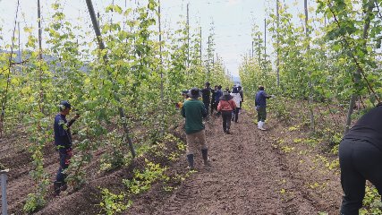 農作業を通じてホップに関する知識を学ぶ「ホップワーク」が今月8日・土曜日に開催されました。「ホップワーク」は、参加者が畑での作業を通じてホップの栽培技術や知識などを学ぶことができる農作業体験プログラムです。この活動は地域おこし協力隊の神山拓郎さんが代表を務める「遠野アグリサポート」が企画・運営し、年に数回、実施されています。この日は、10人ほどが参加して、棚の上に向かって伸びたホップのつるを引き下ろす「つる下げ」が行われました。この作業を行うことで、成長速度が異なるそれぞれのつるの高さがそろい、バランス良くホップを茂らせることができるそうです。また、この日のホップワークには、釜石シーウェイブスの河野良太選手と伊藤大輝選手が招待され、他の参加者と一緒に農作業を体験していました。なお、参加した人たちは8月ごろ開催される満開のホップ畑でビールを楽しむイベント「サポーターミーティング」に招待されるということです。Copyright(C) TonoCableTelevision. All rights reserved.