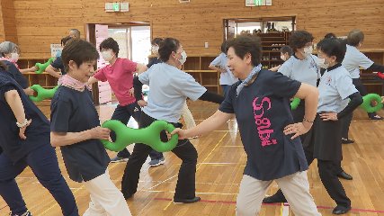 年齢や性別に関係なく用具を使って楽しみながら健康づくりができる3B体操のミニ交流会がきのう(30日・日曜日)土淵地区センターで開かれました。この交流会は3B体操について知ってもらい健康づくりに活かしてもらおうと日本3B体操協会岩手県支部が開きました。きのうは、市内の会員や一般参加者およそ40人が集まって指導者に教わりながら楽しく体を動かしました。3B体操は「ボール」や空気で膨らませたメガネのような形の「ベル」、ビニール製の輪をつなげた「ベルター」の3つの用具を使用して行うことからその頭文字をとって名前が付けられました。また、この体操は音楽に合わせて行うなど「遊びの要素」を取り入れ、運動が苦手な人でも「気軽に」参加し高齢者や障がいのある人でも「体に無理なく」取り組めるという特徴があります。そして、生活習慣病や寝たきりになるのを予防する効果などもあるということです。参加者は用具の使い方にもすぐに慣れ和気あいあいとした雰囲気の中体操を楽しんでいました。なお、市内では青笹町でも3B体操の教室が開かれており興味のある人は気軽に相談してほしいということです。Copyright(C) TonoCableTelevision. All rights reserved.