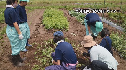 松崎町未来づくり協議会が取り組んでいる『ふれあい農園』で花巻清風支援学校遠野分教室中学部の生徒が春にまいた野菜を収穫しました。その様子が届きましたのでお伝えします。『ふれあい農園』は「ふれあいと協働のまちづくり」を基本目標に定め子どもたちの居場所づくりと地域の支え合いを目的に活動しています。この農園では春に、花巻清風支援学校遠野分教室中学部の生徒が水菜、春菊、ラディッシュの種をまき、今月上旬に収穫時期を迎えました。そして今月3日、遠野分教室中学部の生徒が農園を訪れて収穫をしました。生徒たちははじめ、恐る恐る野菜を土から抜いていましたが、慣れてくると『まいた種がこんなに大きくなったのか』『どうやって食べるの?』『家にお土産に持っていく』『先生も持って帰ってね』などと話しながら収穫を楽しんでいました。また松崎町未来づくり協議会では地域支え合いの活動として畑で収穫した野菜をふれあいホーム薬研淵をはじめ、4カ所の介護施設に提供しました。介護施設ではその野菜を食事に使用して、利用する人たちから大変喜ばれているということです。松崎町未来づくり協議会では『これからも地域の人たちに喜ばれる活動をしていく』と意欲を高めていました。Copyright(C) TonoCableTelevision. All rights reserved.