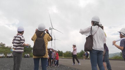 去年5月から運転を開始した住田町と遠野市にまたがるグリーンパワー住田遠野風力発電所で先週土曜日、地元住民などを対象とした見学会が開かれました。この見学会は、運転開始から1年余りが経過した大規模風力発電所を公開し、地域の人たちに再生可能エネルギーについて理解を深めてもらおうと、風力発電の事業を行なう株式会社グリーンパワーインベストメントが地域貢献活動の一環で実施したものです。去年の5月から運転を開始したグリーンパワー住田遠野風力発電所は、下有住の火の土と小友町の境となる山の尾根に整備されました。風車は住田側に10基、遠野側に17基設置し、27基合わせた全体の出力は、県内最大規模となる11万3400キロワットで、一般家庭およそ8万4000世帯の電力供給に相当するということです。また、年間でおよそ10万トンの二酸化炭素の削減効果が期待されています。見学会には住田町や遠野市などからおよそ40人が参加しました。特別に公開された内部のシステム部分の見学や参加者同士で輪を作り13メートルあるタワーの周りの長さを調べたり、高さ114メートルの風車を見上げたりしてその大きさに圧倒されていました。また、見学を終えた一行は、小友町のイベント会場に設けられたグリーンパワーインベストメントのブースへ移動し、風力発電所に関するクイズラリーなどにも挑戦してさらに理解を深めていました。なお、グリーンパワー住田遠野風力発電所で発電した電力は、再生可能エネルギーの固定価格買い取り制度に基づき、東北電力ネットワークに全量供給されているということです。Copyright(C) TonoCableTelevision. All rights reserved.