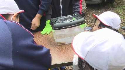 鱒沢小学校の児童がきのう、絶滅が危惧される希少な淡水魚「ハナカジカ」が生息する沢を自然観察しました。この自然観察は水質のきれいな場所でのみ生息できる「ハナカジカ」を通じて、子どもたちに自分たちが住む地域の自然について学んでもらおうと、鱒沢地域づくり会議が実施しました。きのうは鱒沢小学校の5・6年生8人が、去年ハナカジカの生息が確認された宮守町鱒沢の岩舘地区にある沢でハナカジカを探しました。ハナカジカは北海道や東北地方の一部に生息している日本固有種で、岩手県では現在絶滅の危機が増大しているとして、「絶滅危惧U類」に指定しています。児童たちは大きな石をどかしたり日陰になっている場所をチェックしたりと、ハナカジカを一生懸命探していました。鱒沢地域づくり会議が去年の同じ時期に調査した時は、30分間で12匹のハナカジカを発見できたそうですが、きのう見つけられたのは5cmほどの個体1匹だけでした。ハナカジカを間近で見た児童たちは「ナマズみたいな顔をしている」などと言いながら興味深そうに観察していました。このあとハナカジカはもといた場所に返されました。児童たちは自然観察を通じてハナカジカが生息できる豊かな自然環境を守っていくことの大切さを学んだ様子でした。Copyright(C) TonoCableTelevision. All rights reserved.