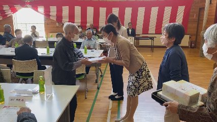 先月の28日と29日に松崎町4区自治会と綾織町の敬老会が開かれました。その様子が届きましたのでお伝えします。先月28日に開かれた松崎町4区自治会の敬老会には対象者28人のうち14人が出席しました。敬老会では、自治会長があいさつをしたあと参加者全員で百歳体操を行い健康意識を高めました。このあと歓談に入ると市内で活動する「おとめ座」が歌と踊りを披露し長寿の祝いに華を添えていました。次は先月29日に開かれた綾織町の敬老会です。綾織町の敬老会には対象者308人のうち、45人が参加しました。会では、77歳の「喜寿」88歳の「米寿」などを迎えた人たちに記念品が贈らました。また、綾織町の最高齢、102歳の瀬川秀良さんには「百二賀」のお祝いが贈られています。この日敬老会に参加した人たちはおしゃべりをしながら親睦を深め、楽しい時間を過ごしている様子でした。Copyright(C) TonoCableTelevision. All rights reserved.