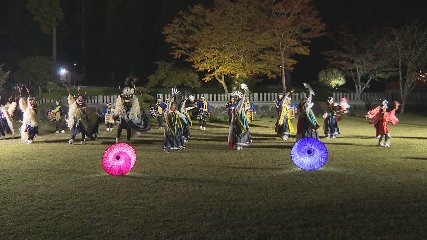 遠野郷八幡宮では来月3日まで「紅葉ライトアップ」が行われています。このなか、先週土曜日はライトアップされた神社の境内でしし踊りを披露するライトアップしし踊りが開かれました。このイベントはライトアップされた境内で郷土芸能団体が舞を披露する機会を作り担い手不足などの課題解決につなげたいと遠野郷八幡宮がきょねん初めて開催しました。この日は遠野郷八幡宮の筆頭役獅子である長野獅子踊りが去年に続いて舞を披露しました。拝殿前で舞を奉納した後ライトアップされ、幻想的な空間の中力強い太鼓の音や掛け声に合わせて勇壮な舞が披露されると訪れた人たちはその姿に見入っていました。演舞の後には獅子との記念撮影が行われ訪れた人たちは貴重な体験に胸を弾ませていました。踊りを披露した長野獅子踊り保存会の佐藤清正会長は「郷土芸能団体について知ってもらういい機会になる。今後もこのようなイベントがあれば積極的に参加したい。」と話していました。また、遠野郷八幡宮の多田頼申宮司は「来年も開催したい。郷土芸能を披露する恒例行事にして郷土芸能団体の活性化につなげたい。」と決意を新たにしていました。Copyright(C) TonoCableTelevision. All rights reserved.
