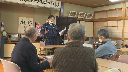 犯罪から身を守る方法を学ぼうと遠野町第三区の自治会館で犯罪被害防止講話が開かれました。この講話は、近ごろ一般住宅に押し入り金品を奪う強盗事件が全国で多発する中、自分の身を守るための方法を学んでもらおうと市内の老人クラブ穀町クラブが開きました。この日は穀町クラブの会員24人が参加し、遠野警察署遠野駅前交番の中嶋大悟所長が、犯罪被害にあわないために心がけることを伝えました。中嶋所長は、最近不審者が一般住宅を訪問する事案が複数発生していると話し、知らない人が訪問した際はインターホンやドア越しに対応するなど、自分を守る行動をとって欲しいと伝えました。また、窓ガラスを割られ家に侵入された場合などに備えて、家の中でカギがかかる場所といった避難場所を前もって考えておくことが大切であると話しました。この日参加した人たちは、中嶋所長の講話を通して自分の身を守るための方法を学んでいました。Copyright(C) TonoCableTelevision. All rights reserved.