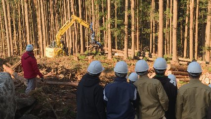 緑峰高校の生徒が林業について理解を深める「林業の仕事紹介」が先週火曜日に綾織町の山林で開かれました。「林業の仕事紹介」は緑峰高校の2年生31人を対象に地元の林業事業体への就業や、いわて林業アカデミーへの進学を促進しようと遠野市と遠野農林振興センターが開催しました。生徒たちは林業の現場でどのような仕事が行われているのか間近で見学する中で、切る・つかむ・掘るなど1台で何役もこなす高性能林業機械の特徴について説明を受けました。また木材をつかんで運ぶ重機「グラップル」の操作体験も行われ、生徒たちは遠野地方森林組合のオペレーターから指導を受けながら、木材をつかんで運ぶ操作に挑戦しました。このあと緑峰高校の教室に場所を移し、いわて林業アカデミーについての説明が行われました。いわて林業アカデミーは実習を通じて林業の基礎を学び、様々な資格を取得できる研修機関で、これまでに緑峰高校の卒業生4人が修了しています。また給付金の支給制度なども充実しており、金銭面で親の援助に頼らず自立して学ぶことができるという点も合わせて伝えられました。生徒たちは林業の仕事やいわて林業アカデミーについて多くの情報を学びとり、進路の参考にした様子でした。Copyright(C) TonoCableTelevision. All rights reserved.