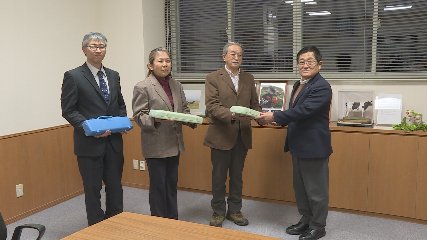遠野市のネパール国アルジュンドラ市への訪問にあわせて、市民有志が現地の子どもたちのために楽器を寄贈しました。今回アルジュンドラ市に寄贈されるのは市内で使われなくなった鍵盤ハーモニカ13台とリコーダー5本です。これらの楽器は市民グループ「つなぐ会」と「遠野市街活性化ワクワク会」が協力を呼び掛けて集めたものです。式ではつなぐ会の小林立栄代表が「アルジュンドラ市の子どもたちの音楽教育に役立ててください」とあいさつしたあと、多田市長に現地へ送る楽器を手渡しました。受け取った多田市長は「ネパールの子どもたちは学校で楽器にふれることがあまりないので、ありがたく現地に運ばせていただきます」と感謝の言葉を送っていました。なおネパール国アルジュンドラ市には多田市長をはじめとした遠野市訪問団があすから1週間ほどの日程で滞在し、国際交流協定の締結のほか現地との交流を行う予定となっています。Copyright(C) TonoCableTelevision. All rights reserved.