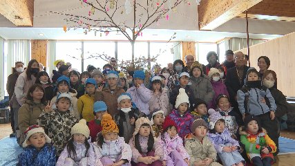 五穀豊穣や無病息災などを祈る小正月の伝承行事がおととい総合福祉センターで行われました。この行事は子どもたちと地域の高齢者が交流しながら松崎町に古くから伝わる小正月行事を受け継いでいくことを目的に遠野市社会福祉協議会松崎支部が毎年この時期に行っています。この日は白岩児童センターを利用する児童や白岩保育園と松崎保育園、老人クラブなどからおよそ100人が集まりました。はじめにみずき飾りが行われ子どもたちは地域の人たちに手伝ってもらいながらみずきの枝に赤や緑、黄色など色とりどりの団子を飾り付けていました。みずき飾りが完成すると神事が執り行われ集まった人たちはことし1年の五穀豊穣と無病息災などを祈っていました。このほか子どもたちは「お田植え」と「烏よばり」を体験し、農作物の豊作を祈りました。なお、この日完成させた色とりどりのみずき飾りは来週20日の正午まで総合福祉センターに飾られます。Copyright(C) TonoCableTelevision. All rights reserved.