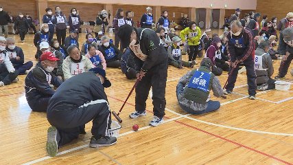 第19回シルバー室内競技大会がきょう市民体育館で開かれました。この大会は、高齢者スポーツの普及や健康づくり仲間づくりなどを図りながら、出場者同士の親睦を深めてもらおうと遠野市老人クラブ連合会が毎年開催しています。きょうは、老人クラブ会員などおよそ270人が出場し各町9チーム対抗で輪投げやミニゲートボールなど4種目を行い合計得点で順位を競いました。このうち、列をつくり後ろの人にボールを頭の上から手渡していく「ボール送り」では、選手たちが声を掛け合い息を合わせたプレーを見せると応援にも熱が入り一緒に盛り上がって競技を楽しんでいました。会場には歓声や笑い声が響きわたり、和気あいあいとした雰囲気の中仲間との交流も深めていました。なお熱戦の末、輪投げやボール送りなど3種目で1位を獲得した遠野町が総合優勝の栄冠を手にしました。Copyright(C) TonoCableTelevision. All rights reserved.