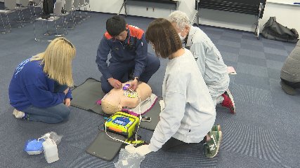 自然災害などにより命が危険にさらされる状況が多発する中、市内の観光業に携わる人たちが参加した危機管理講習が先週木曜日総合防災センターで開かれました。この講習は、火災や急病者が発生した場合に落ち着いて適切な対応ができるようにと遠野市観光協会が初めて開きました。この日は、市内で宿泊業など観光に関わる人たち12人が参加して万が一の事態に備えました。講師は遠野消防署の署員が務め、はじめに参加者たちは、火災の発生を想定し消火器の操作や消火できなかったときは素早く逃げることを学びました。続いて、急病者の蘇生処置訓練が行われ心肺停止の人が発生した場合の胸骨圧迫やAEDを使用した対処法を教わりました。参加者は真剣な表情で講師の説明に耳を傾け、正しい姿勢で作業を行うことなど一つ一つ手順を確認しながら蘇生処置を体験していました。なお遠野市観光協会では、定期的に講習を開催し観光客に安心・安全な遠野の旅を提供する取り組みを進めていくということです。Copyright(C) TonoCableTelevision. All rights reserved.