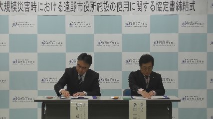 大規模な災害が発生した際に、盛岡地方気象台が遠野市の施設を使用して業務を継続するための協定を遠野市と盛岡気象台がこのほど締結しました。先週水曜日に盛岡地方気象台で行われた締結式では、多田市長と盛岡地方気象台の堀川道広台長が、「大規模災害時における遠野市役所施設の使用に関する協定書」を交わしました。この協定は、盛岡市とその周辺で大規模な災害が発生し、盛岡地方気象台の庁舎や他の施設での業務が難しいと判断した場合、遠野市の施設の一部を使用して、防災情報の提供といった業務の継続を支援することを目的としています。遠野市は県のほぼ中央に位置し、東日本大震災の時には後方支援の拠点にもなったことから、通信が機能しなくなった災害時に、盛岡地方気象台が発表する情報を伝達することができるとして、今回の締結に至りました。協定締結後、盛岡地方気象台の堀川道広台長は、「念願の締結となった」と市の協力体制に期待をよせていました。また多田市長は、「災害が発生しないことを願うばかりですが、何かあった際には一緒に協力して支援体制をつくっていく」と、協定締結を機により強固な防災支援に力を込めていました。Copyright(C) TonoCableTelevision. All rights reserved.