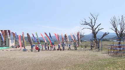 青空の下で風にたなびくこいのぼりと松崎保育園の園児が元気いっぱいに遊ぶ様子を取材しました。青空が広がる晴天のもと、松崎保育園では20匹の色とりどりのこいのぼりが元気に空を泳いでいました。このこいのぼりは、地域の方が子どもたちの健やかな成長を願い、また昔ながらの風物詩に親しんでもらおうと保育園に貸し出し、今回が初めてのお披露目となりました。こいのぼりはまるで園庭で遊ぶ子どもたちを優しく見守っているかのよう。春のぬくもりに包まれた笑顔いっぱいのひとときでした。Copyright(C) TonoCableTelevision. All rights reserved.