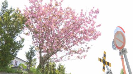 上郷町で八重桜が開花し見ごろを迎えているとの情報をいただいたので取材に行きました。上郷町板沢にある北日本自動車工業裏の敷地には、見事な花を付けた八重桜が今まさに咲き誇っていました。20年以上前に植えられたというこの桜は毎年この時期にキレイな花を咲かせ、ピンク色の花びらは周囲一帯を春色に染めています。美しく咲き誇る八重桜の様子をお届けしました。
