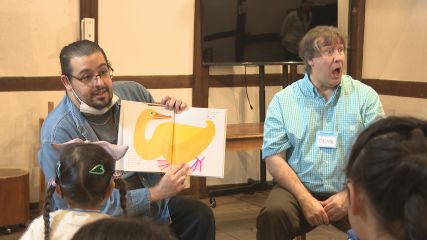 外国人講師と一緒に楽しく英語に触れるEnglishキャラバンDayが、今週日曜日こども本の森遠野で開かれました。Englishキャラバンは、遊びと英語をコンセプトに楽しみながら学べる巡回型の異文化体験活動を市内児童施設で実施しています。今回はこども本の森遠野を会場に実施され、市内外から10人の小学生や園児が参加し遊びを通じて英語に触れました。講師にはアメリカ人のディーンさん、アルジェリア人のビリーさん、そして谷渕眞理子さんが務め、歌やカードゲーム、本の読み聞かせをしました。講師たちは、自分が発した単語や文章を繰り返し子どもたちにも声に出させて、英語を話す違和感や抵抗感をなくすような工夫をしていました。会場にいた保護者に今回の感想を聞くと、「楽しく英語に関われてとても良いと思ったし、講師がずっと英語で話をするのでネイティブな発音を常に聞けて良いリスニングにもなる」と満足していました。Englishキャラバンは今年度も各児童館などで開かれます。また、日曜日などに実施するEnglishキャラバンDayも継続して開催していきたいとしています。問い合わせは、遠野市教育文化振興財団までお願いします。Copyright(C) TonoCableTelevision. All rights reserved.