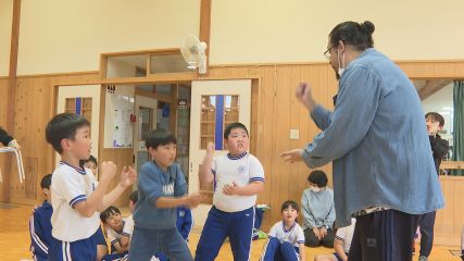 英語を使いながら楽しく遊ぶEnglish・キャラバンが今週水曜日上郷児童館で開かれました。English・キャラバンは、時代の変化に対応できるグローバルな人材を育成するため、子どもたちに楽しく遊びながら英語に興味を持ってもらおうと、遠野市が実施しています。この日は、上郷児童館を利用している児童およそ40人が参加する中、アルジェリア出身のビリーさんが講師を務め、英語の歌やダンス絵本の読み聞かせが行われました。児童たちはビリーさんに腕や足などの英単語を教えてもらったあと、音楽に合わせ踊りながら楽しく英語に親しみました。また、英語の絵本の読み聞かせでは、ビリーさんが読んだ文章を子どもたちが繰り返すなど聞くだけではなく声に出しながら英語のリズムや発音を学んでいました。このほかにも、英語のじゃんけんなども行われ児童たちは楽しみながら英語にふれあっていました。なお、English・キャラバンは今後市内全ての児童施設で実施されます。次回は6月9日月曜日宮守児童館で開催される予定です。Copyright(C) TonoCableTelevision. All rights reserved.