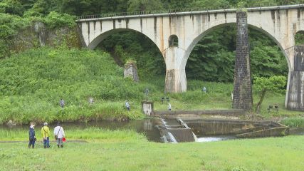 めがね橋周辺の環境整備が今週日曜日の早朝に実施されました。この環境整備は、宮守銀河まちづくり協議会が計画する令和7年度事業の一つで、毎年この時期に行われています。この日は、下郷地区自治会や新町自治振興会のほか、地域の芸能団体や商店街の団体などから35人が参加し、めがね橋周辺の草刈り作業が実施されました。梅雨時期を迎えるこの頃は雑草の伸びが早く、普段手入れをしない場所では人が隠れてしまうほどの高さまで草が伸びていました。参加した人たちは草刈り機のエンジンをかけると、慣れた手つきで次々と草を刈っていきました。線路付近は急斜面になっていましたが、安全に気を付けながら丁寧に作業が行われていました。宮守銀河まちづくり協議会は、今後も地域の人たちに協力してもらいながら住みよいまちづくりに取り組んでいくとしています。Copyright(C) TonoCableTelevision. All rights reserved.