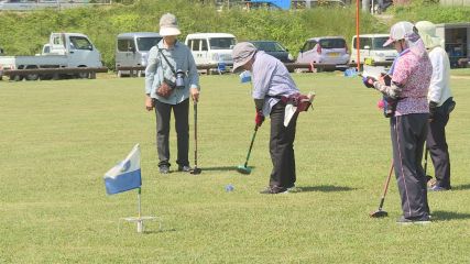 遠野市老人クラブ連合会女性部のグラウンドゴルフ大会が今週水曜日、早瀬川緑地グラウンドで開かれました。今回で11回目を迎えるこの大会は会員の健康づくり推進や親睦・交流を深めることなどを目的に毎年開催されています。大会には70代から80代の女性部員51人が参加し、開会式では遠野市老人クラブ連合会の中浜清輝会長が「初心者もベテランも、楽しく元気にプレーしてください。」とあいさつしました。競技は1チーム3人から4人で8ホールのコースを3ラウンド回り団体戦と個人戦で順位を競いました。この日は日中の最高気温が30度を超える真夏日となりましたが、参加者たちはときおり吹く心地よい風を感じながら声を掛け合ってプレーを楽しんでいました。なお大会の結果、個人の部は上郷町の新田美保子さんが、団体の部は上郷中央が1位に輝きました。Copyright(C) TonoCableTelevision. All rights reserved.