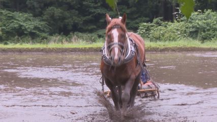 馬と牛を使って田んぼを耕す伝統的な農法を先週金曜日多田市長が見学しました。古くから馬や牛との生活を身近にしてきた遠野では、家畜の力を借りて田を耕したり山で切り出した木材を搬出したりしてきました。この日は多田市長や市職員など4人が視察に訪れ、貴重な遠野の文化を今に残し技術の継承などの活動をする岩間敬さんから、馬耕・牛耕についての説明を受け、遠野が誇る文化を再確認している様子でした。