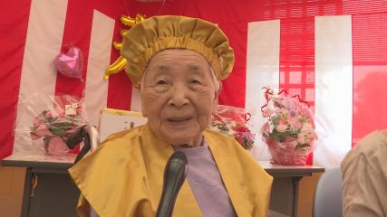 きのう、100歳の誕生日を迎えた女性に遠野市などから記念品が贈られました。100歳の誕生日を迎えたのは、松崎町の菊池ヨリさんです。大正14年8月20日に生まれた菊池さんは、19歳の頃に夫・敏さんと結婚後3人の子宝に恵まれ、現在、次女の山本千鶴子さん家族と一緒に暮らしています。この日は、暑さ対策のために7月から8月末まで入所している老健とおので、施設の利用者やスタッフなどに囲まれながら100歳をお祝いしました。たくさんの人たちに祝福される中、菊池さんには、遠野市や遠野市社会福祉協議会などから記念品やメッセージ入りのプレゼントなど心のこもった贈り物が手渡されました。夫が戦争に行った時には母とともに農業と子育てをして家を守り、昭和23年のアイオン台風や火事により家の全焼という辛い出来事を経験しながらも、周りに支えられ内職の仕事を30年ほど続けるなど、元気に自立した生活を送ってきた菊池さん。3年前からは車いすでの生活になりましたが、まだまだ元気な様子の菊池さんに、二女の千鶴子さんからはこれまでの感謝や労いのことばを添えて美しい花束が贈られました。温かい空気に包まれた菊池さんの誕生会は、集まったみんなで笑いヨガを行い、菊池さんの100歳を祝うとともに、互いの健康を願っていました。なお、遠野市の最高齢はきょう時点で108歳ということです。Copyright(C) TonoCableTelevision. All rights reserved.