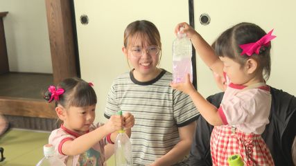 こども本の森遠野で未就学児親子向けのイベント「なつあそび」が、今週日曜日に開かれました。こども本の森遠野では、未就学児親子向けのイベントを毎月開催しています。この日は「なつあそび」と題し、ペットボトルとフリーザーバックを使った「キラキラペットボトルおもちゃ」づくりに挑戦しました。参加した親子は、水と洗濯のりを2対1の割合で合わせたものをペットボトルに入れた後、自分の好きな色やキラキラしたビーズなどを加えていきました。水と洗濯のりを混ぜることで粘り気が出るため、加えたラメがゆっくりと水中を舞う様子をこどもたちはじっと見つめて楽しんでいました。思い思いのおもちゃが完成した後は、いちの蔵で「おばけやしきごっこ」をして遊びました。おばけのミニトンネルをくぐったり、風船おばけにタッチして揺れ動かしたりしてその動きを楽しんでいました。イベント当日は暑い夏を吹き飛ばすような子どもたちの笑顔がたくさん見られた1日となりました。なお次回9月のイベントは「おまつりごっこ」が予定されています。詳しくはこども本の森遠野までお問い合わせ下さい。Copyright(C) TonoCableTelevision. All rights reserved.