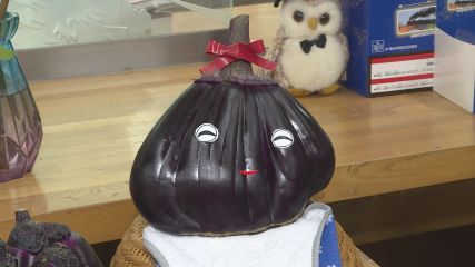道の駅みやもりの中にあるめがねばし直売所では今週火曜日から珍しい形の野菜を展示しています。めがねばし直売所のレジ脇にはまるで野球用グローブのような大きく平べったい形のナスが展示され、買い物客の目を楽しませています。かわいらしく目と口のシールが貼られヘタの部分にはリボンがまかれています。ナスの品種は「くろべえ」という県内でもよく栽培されている一般的なもので、同じ品種のものと見比べても全く違う形・大きさであることがわかります。こちらのナスを育てた宮守町達曽部の多田悦子さんは「特に変わった育て方はしていませんが、8つほどの小さなナスが合体してこのような形になったのではないか」と話しています。長年ナスを栽培している多田さんも今まで見たことがない珍しい形のナス。興味のある方は今週末めがねばし直売所に立ち寄ってみてはいかがでしょうか。Copyright(C) TonoCableTelevision. All rights reserved.